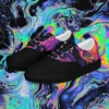 These slip-ons are all about that trippy, swirling liquid design, like a blacklight lava lamp. The colors are wild – purples, pinks, blues, greens – all blending together, man, like a crazy dream. But the real highlight? Plankton, lookin' fresh, riding the Krappy Patty, shaped like a sick Nike swoosh! It's like, totally absurd, but totally awesome. It's all about that weird-but-cool vibe, you know?